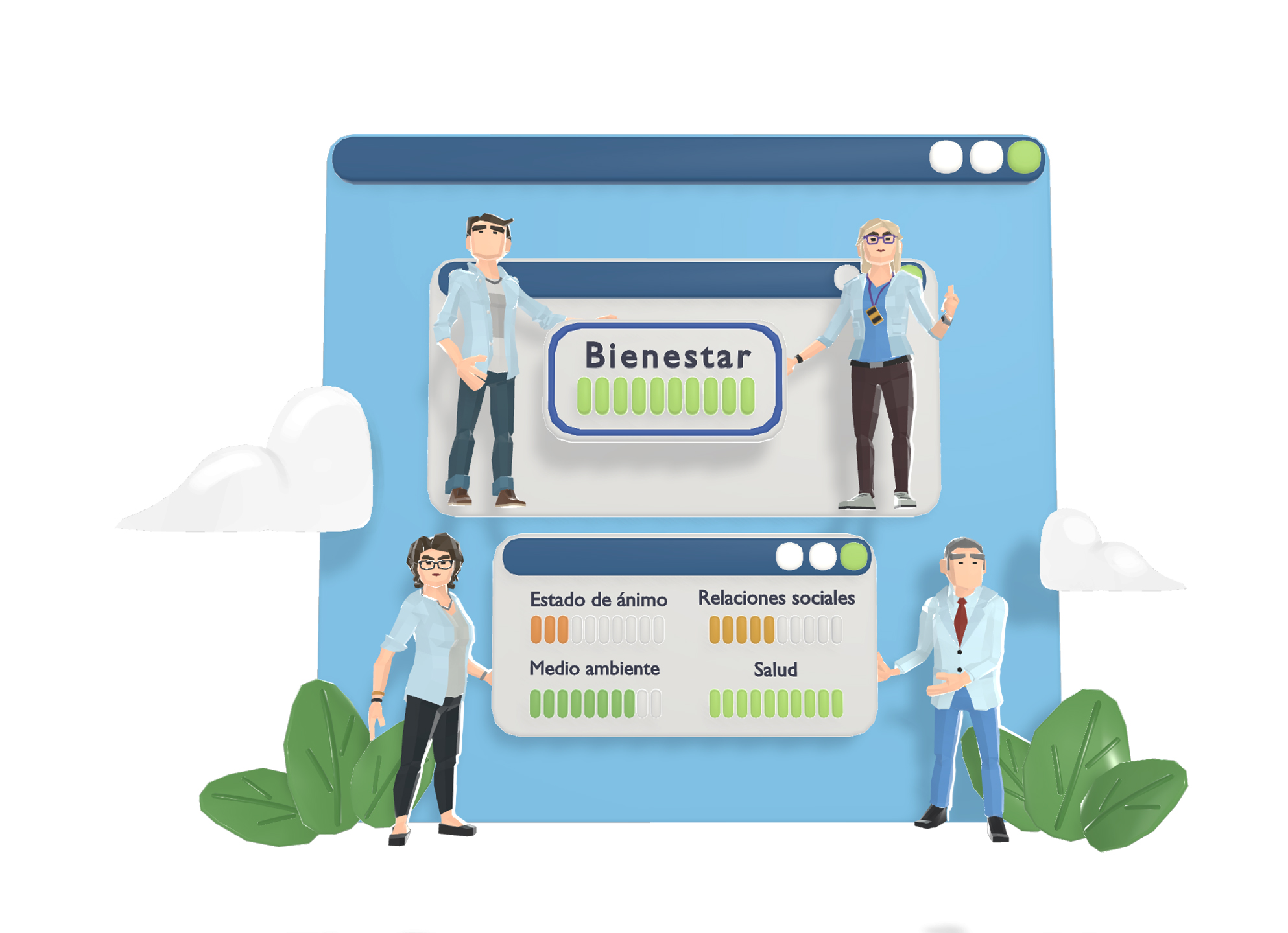 Cada decisión que tomes influirá en tu bienestar, el cual se calcula en base a cuatro factores: Estado de ánimo, relaciones sociales, medio ambiente, y salud.